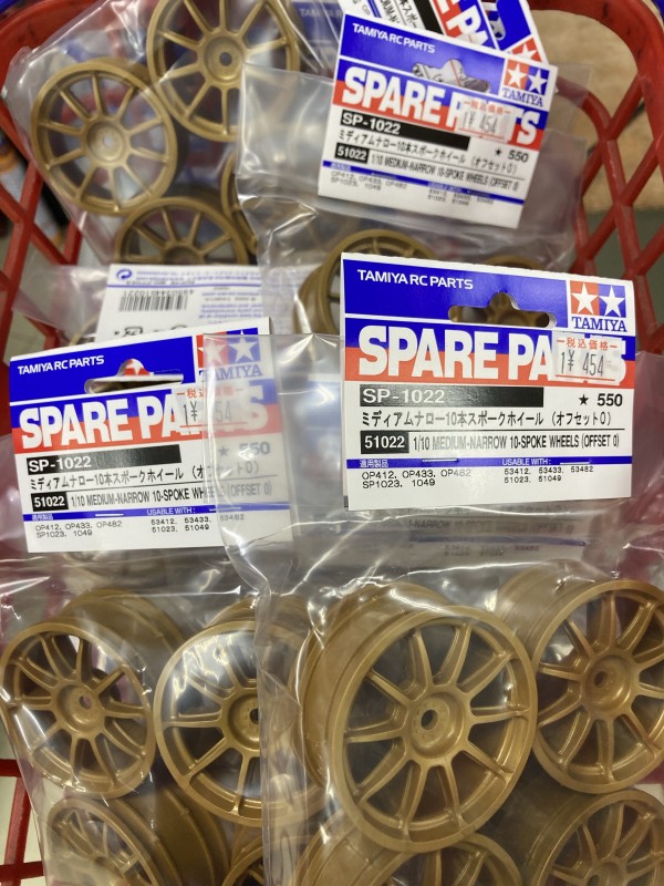 また、タミヤホイールの在庫が今はSP1022ミディアムナロー10本スポークホイールしかありませんので此方はお一人様1日1個(までとさせて頂きます。