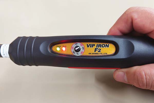 VIPアイロンF2は設定温度表示がついたはダイヤルで正確な温度設定が可能です。通電とヒーターのON/OFFが確認できるLEDがついています。電子制御により約100~220度の範囲で設定温度をプラスマイナス1度でキープできます。